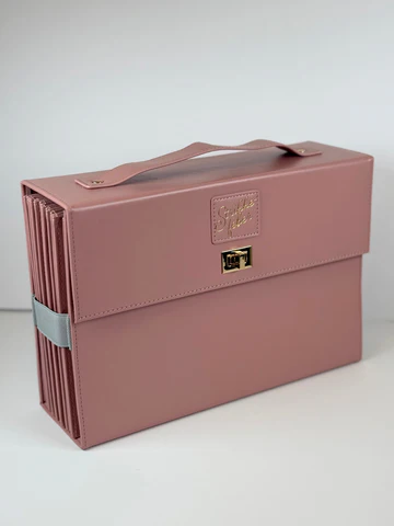 Beskrivelse Rundpinnemappen er laget av topp kvalitet kunstlær. Den har 28 lommer, det er plass til flere rundpinner i hver Merk lommene med klistremerker så har du oversikten, klistremerker med tall til merking følger med. Nå blir det orden i strikkesakene! Etuiet kommer i glatt kunstlær med gulldetaljer og gullfarget lås i i 3 farger som er beige, sennep og støvet blå Mål: Høyde 21 cm x Bredde 28 cm x Dybde 9 cm Den kommer i en smart dustbag, som er fin til oppbevaring av strikketøyet og i en pen eske. |