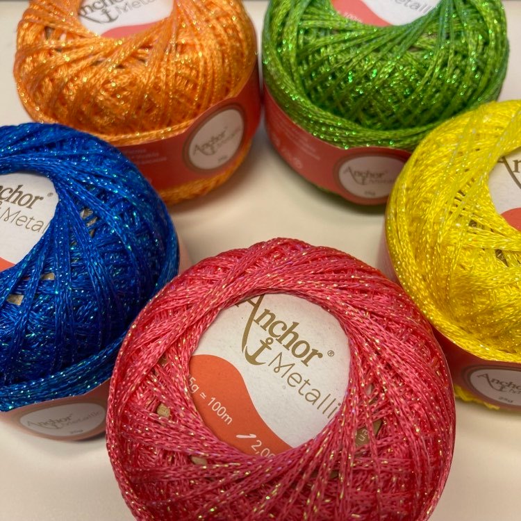 Anchor Metallic - effektgarn - består av 80% viskose og 20% metallisk polyester.