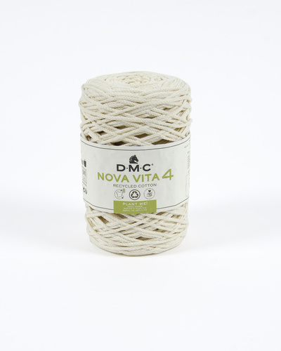 Beskrivelse Nova Vita 4 fra DMC brukes for det meste til makramé, hekling og strikking innen tilbehør og interiør. Tråden er kabelspunnet og ca. 3 mm tykk. Anbefalt heklenål: 4 mm. Anbefalt strikkepinne: 5 mm (14/10) 250 g = ca. 200 m. |