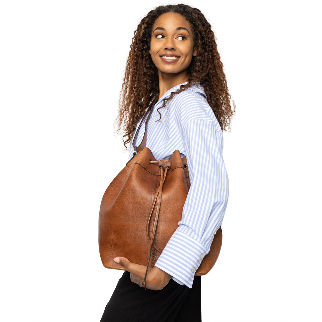 Beskrivelse Snørelukking Romslig design Innvendige glidelåslommer Justerbar Crossbody-stropp Gratis nett i tekstil med på kjøpet! Farge: walnut Kvalitet: 100% skinn Mål: H:34 x B:27 x D:20 cm |