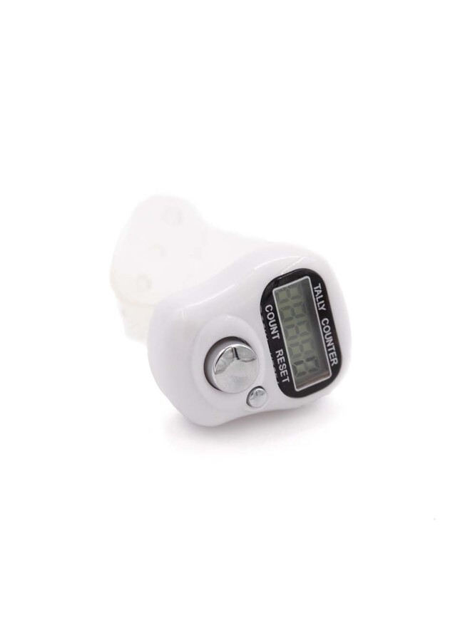 Omgangsteller med justerbar plastreim som settes på fingeren. Hjelper deg med å holde telling på omgangene dine.