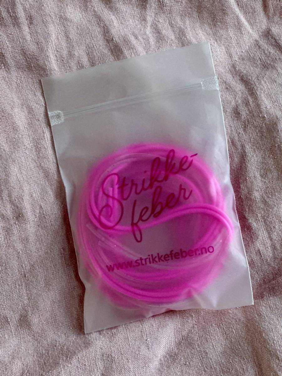 Beskrivelse Maskesnor Strikkefebers maskesnor kommer i en praktisk frostet pose med ziplock. Maskesnoren kommer i to farger og to lengder: Lys rosa gjennomsiktig med glitter 3 stk a 1 meter Rosa 2 stk a 1.5 meter Pris pr pakke. |